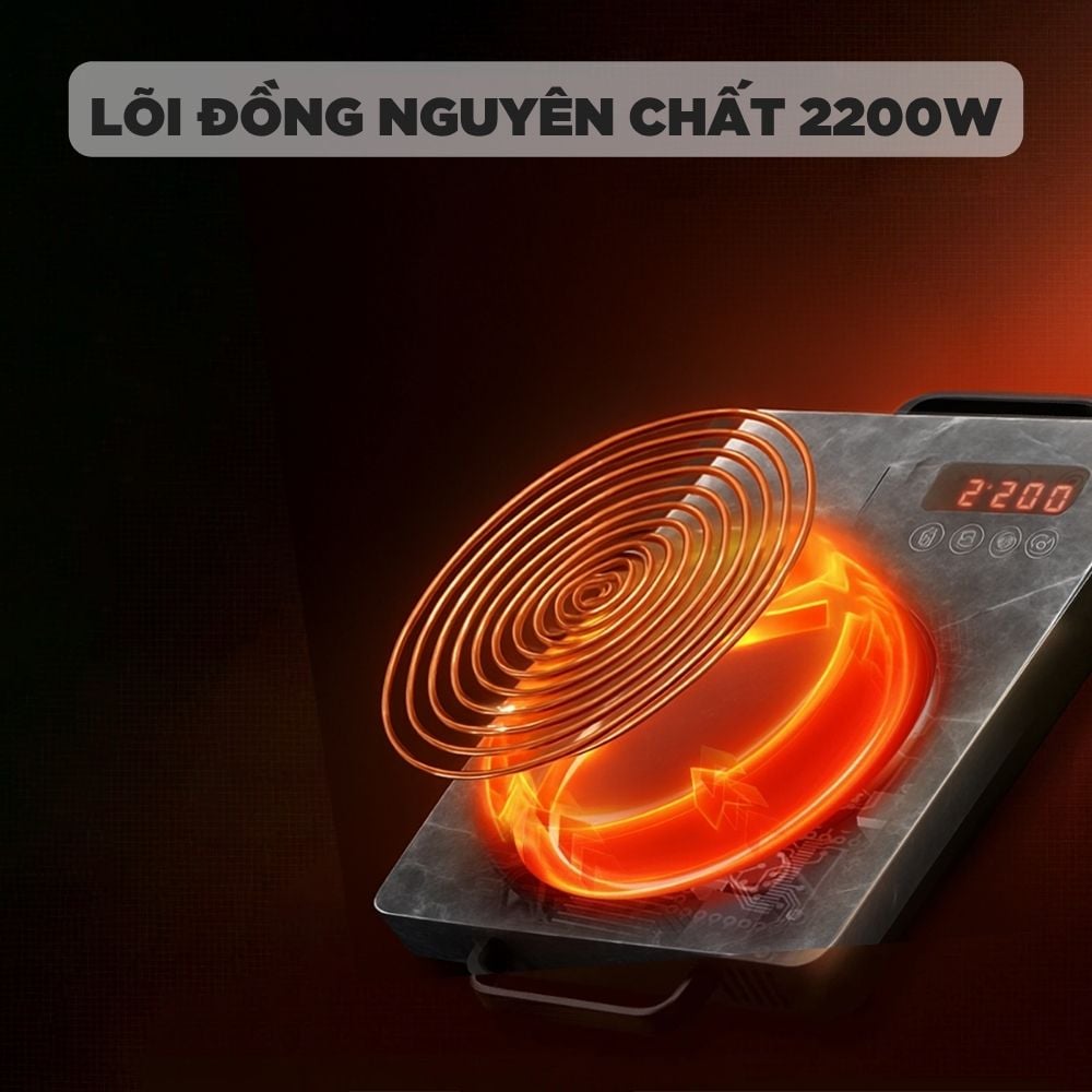 Công suất lớn 2200W – Nấu ăn siêu tốc, không kén nồi