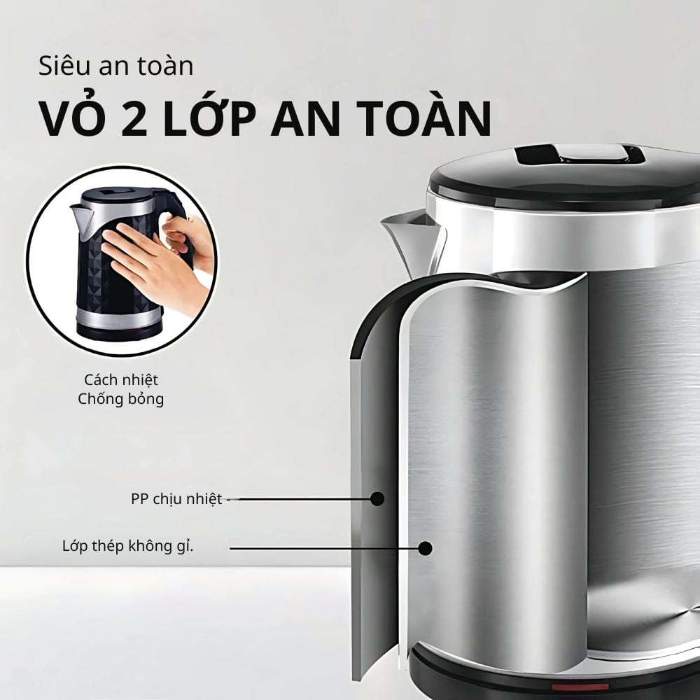 Dung tích 1.8 lít – Phù hợp cho gia đình 3–5 người, pha trà, cà phê hay nấu mì đều tiện lợi.