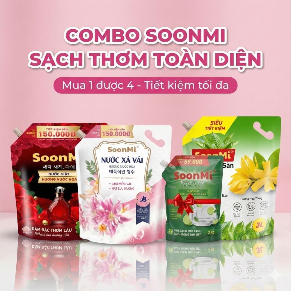 Thay vì mua lẻ tẻ từng món, việc sở hữu trọn bộ 4 sản phẩm thiết yếu của SoonMi không chỉ mang lại sự đồng bộ trong mùi hương mà còn là bài toán kinh tế thông minh cho người nội trợ hiện đại.