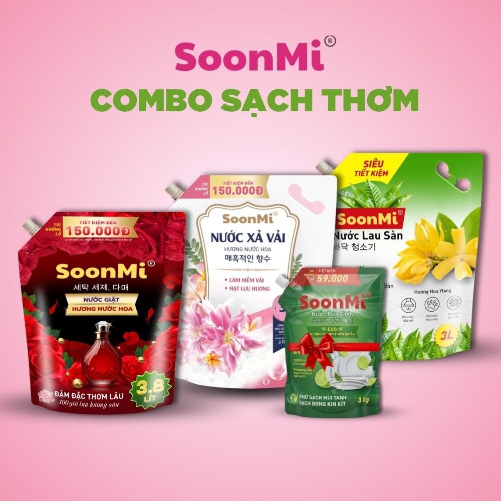 Bạn đang tìm kiếm giải pháp chăm sóc nhà cửa vừa sạch bong, vừa thơm ngát lại giúp tiết kiệm chi phí sinh hoạt? Combo SoonMi Sạch Thơm Toàn Diện chính là câu trả lời hoàn hảo.