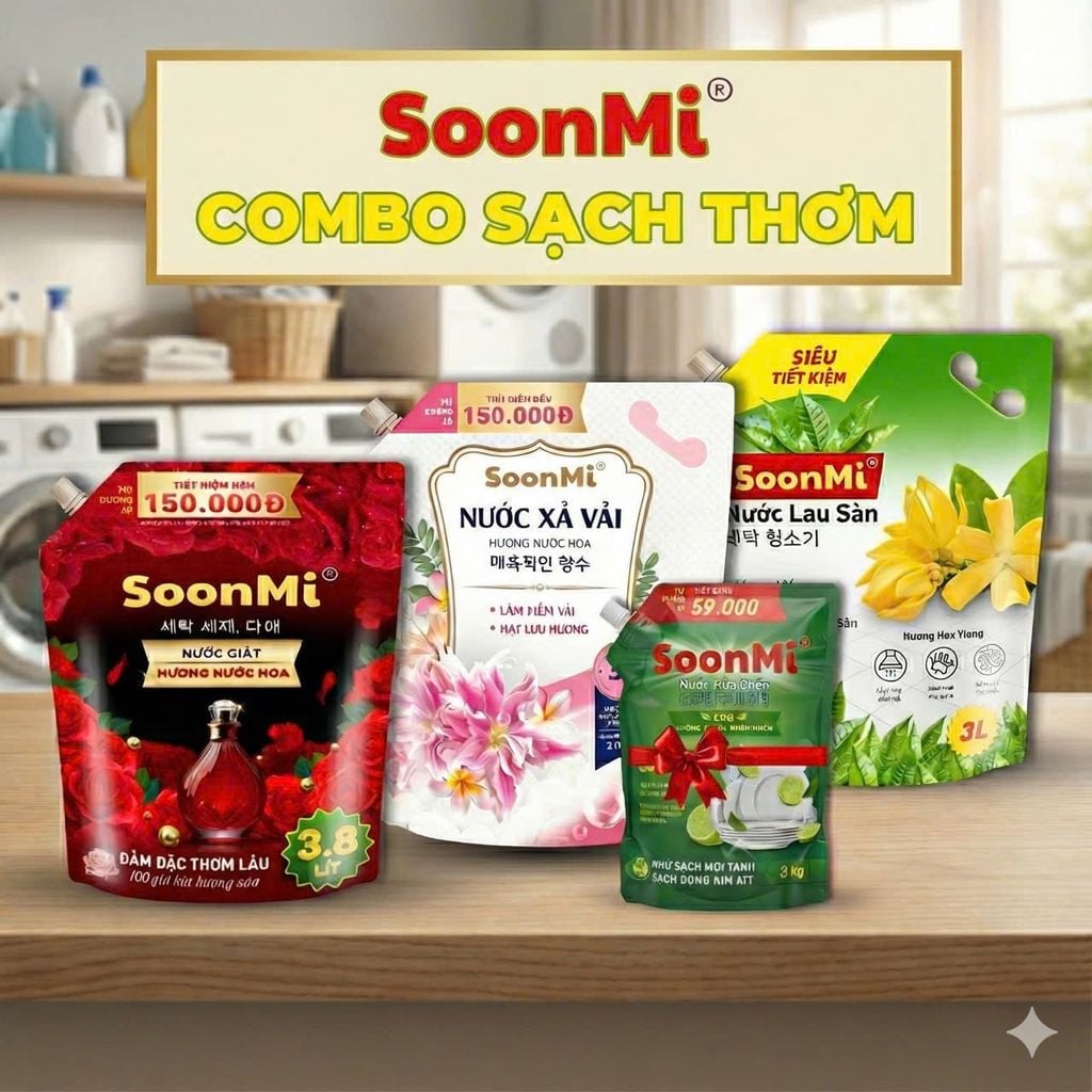 Combo SoonMi Sạch Thơm Toàn Diện: Giải Pháp Chăm Sóc Nhà Cửa 4-trong-1 Tiết Kiệm Tối Đa