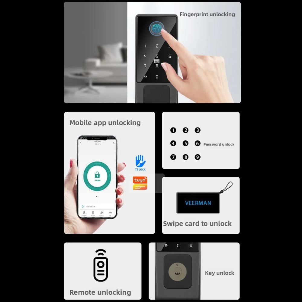 Mở khóa từ xa qua App Tuya: Đây là tính năng "đắt giá" nhất. Dù bạn đang ở văn phòng hay đi du lịch, chỉ cần smartphone có kết nối internet, bạn có thể kiểm soát trạng thái cửa, cấp mật khẩu một lần cho khách đến chơi nhà. (hỗ trợ bluetooth, còn wifi cần mua thêm gateway)