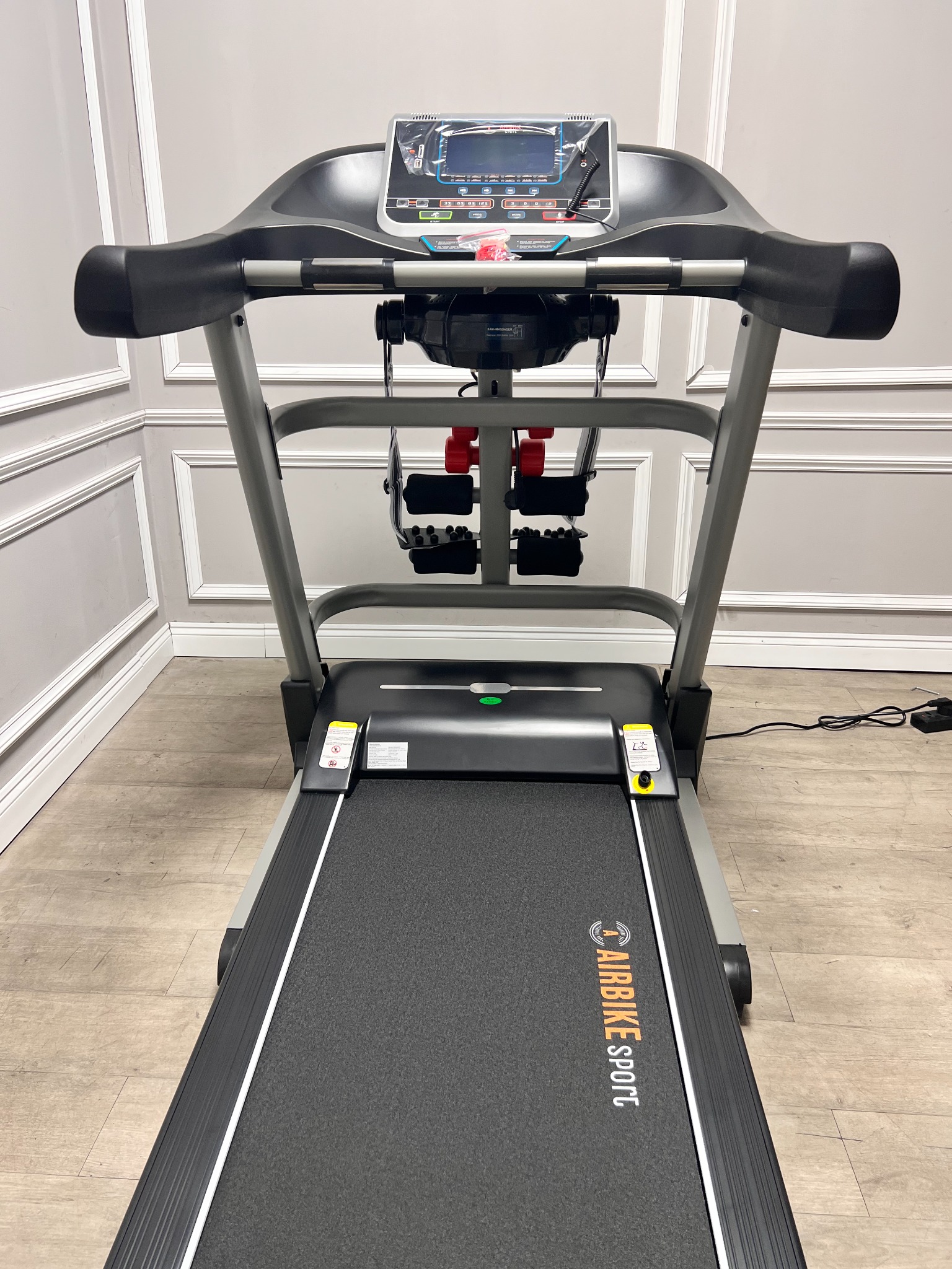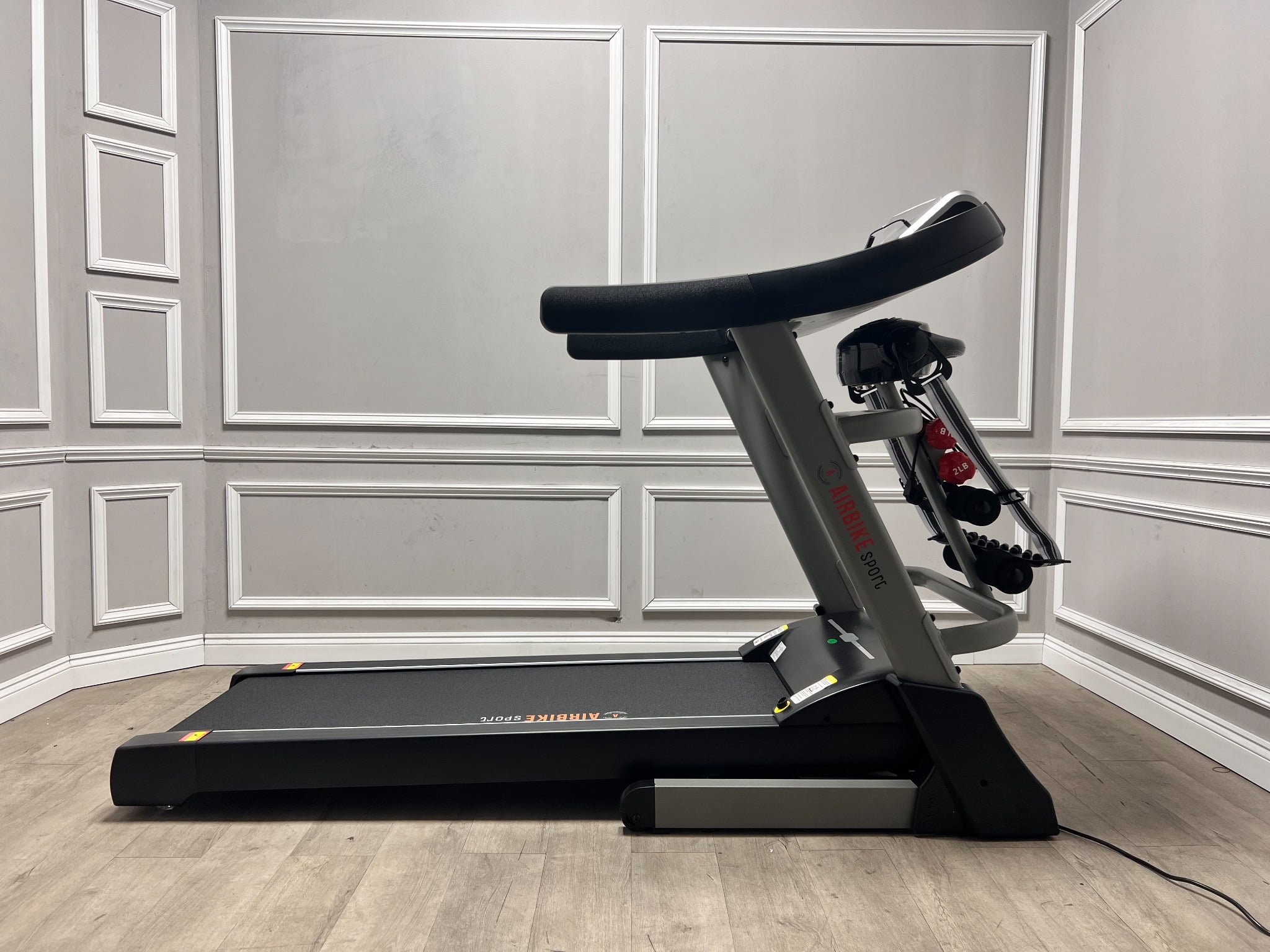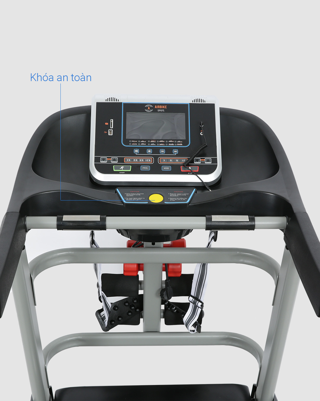 Máy chạy bộ Airbike Sport được thiết kế với màu đen huyền bí, chắc chắn với khung máy từ thép không gỉ thảm rộng 480 nâng dốc tự động. Công suất lớn vượt trội giúp quá trình chạy bộ diễn ra hiệu quả hơn và giúp máy bền lâu hơn.