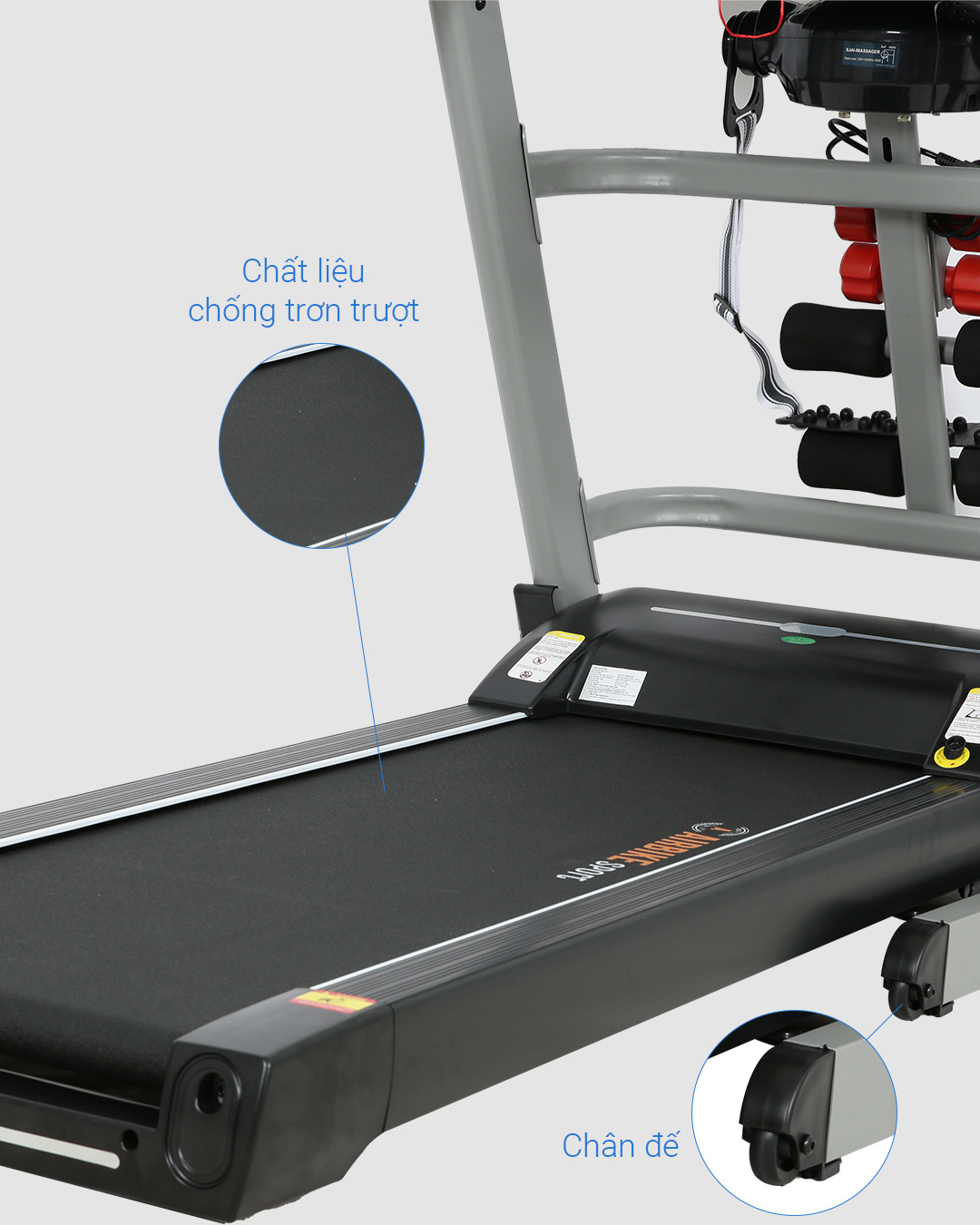 02 tạ tayChân đế chống trượtChức năng tiết kiệm điện với chế độ ngủ đôngCó loa phát nhạcCảm biến nhịp timKhe cắm USBKhoá an toàn chống ngãKèm thiết bị tập gập bụngTự động tra dầuXếp gọn với piston trợ lựcĐai massage rung giảm mỡĐo chỉ số cơ thể (Body Fat)