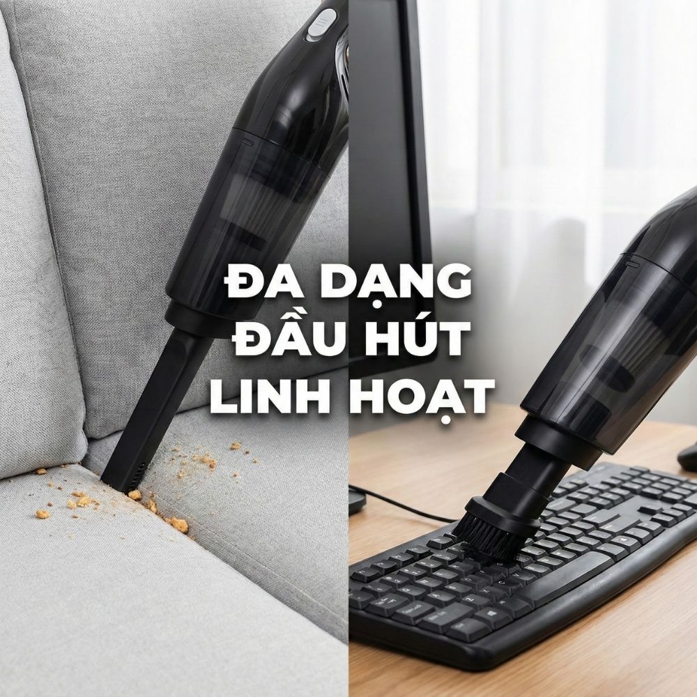 - Thiết kế linh hoạt: Máy có thể tháo rời thành hai phần, giúp bạn dễ dàng sử dụng cho nhiều mục đích khác nhau như hút bụi sàn nhà, hút bụi trên cao, hút bụi xe hơi, v.v.