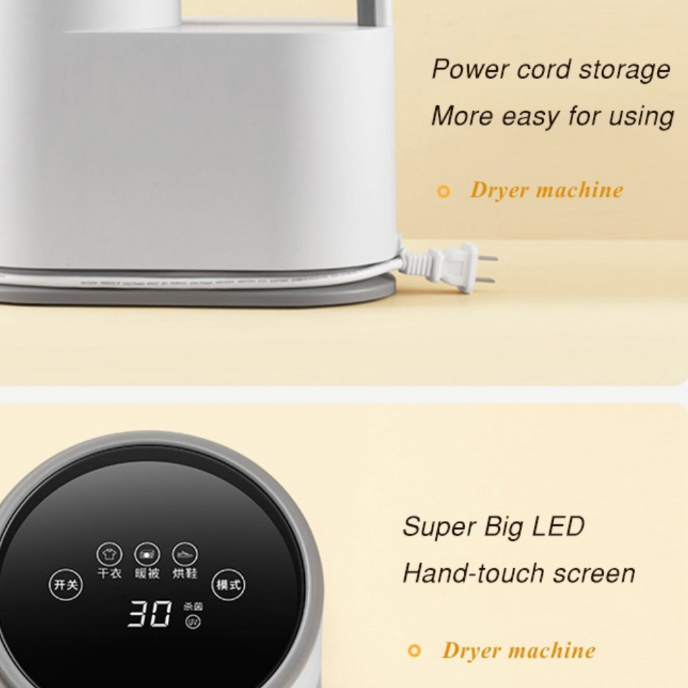 | Tính năng nổi bật Special features | - Màn hình cảm ứng LED lớn - Đèn UV khử khuẩn - Đa chức năng: Sấy quần áo, sấy giày, sấy lông động vật và hút ẩm tủ quần áo, v.v… - Nhẹ, dễ dàng di chuyển và lưu trữ - Yếu tố làm nóng PTC, giúp làm nóng và khô nhanh hơn - Cảm biến nhiệt độ tích hợp, an toàn và đáng tin cậy - Ống nối có thể kéo dài lên tới 57 cm |
