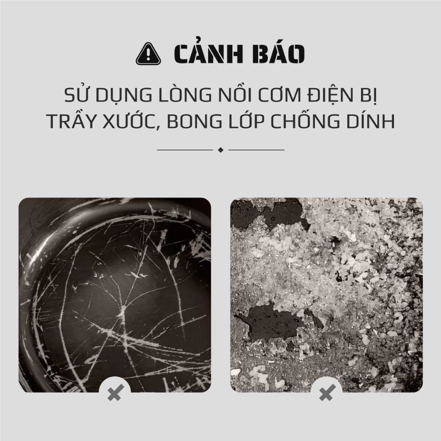 | Thông tin cảnh báo | Không ngâm rửa nồi trong nước hoặc chất lỏng khác |