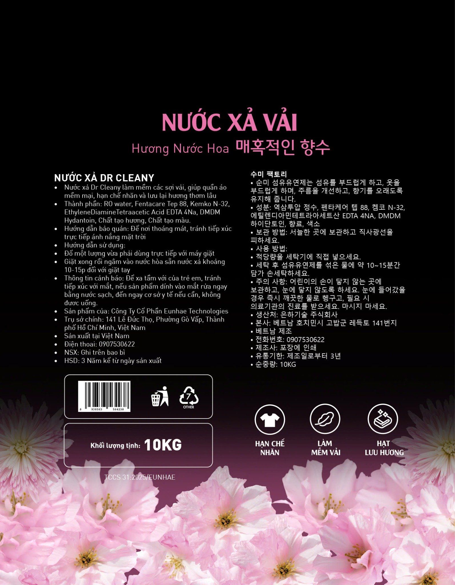 Nước xả Dr Cleany 10KG (Đen) - Lưu Hương Lâu, Mềm Vải | Chuyên Dụng Giặt Ủi MK