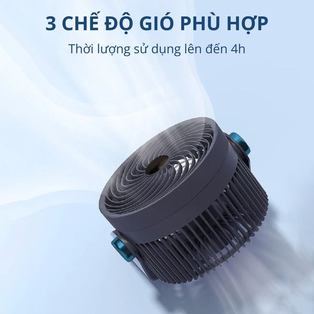 Quạt tích điện Kachi MK372 được trang bị pin lithium 4000mAh cho thời gian sử dụng trong thời gian dài.