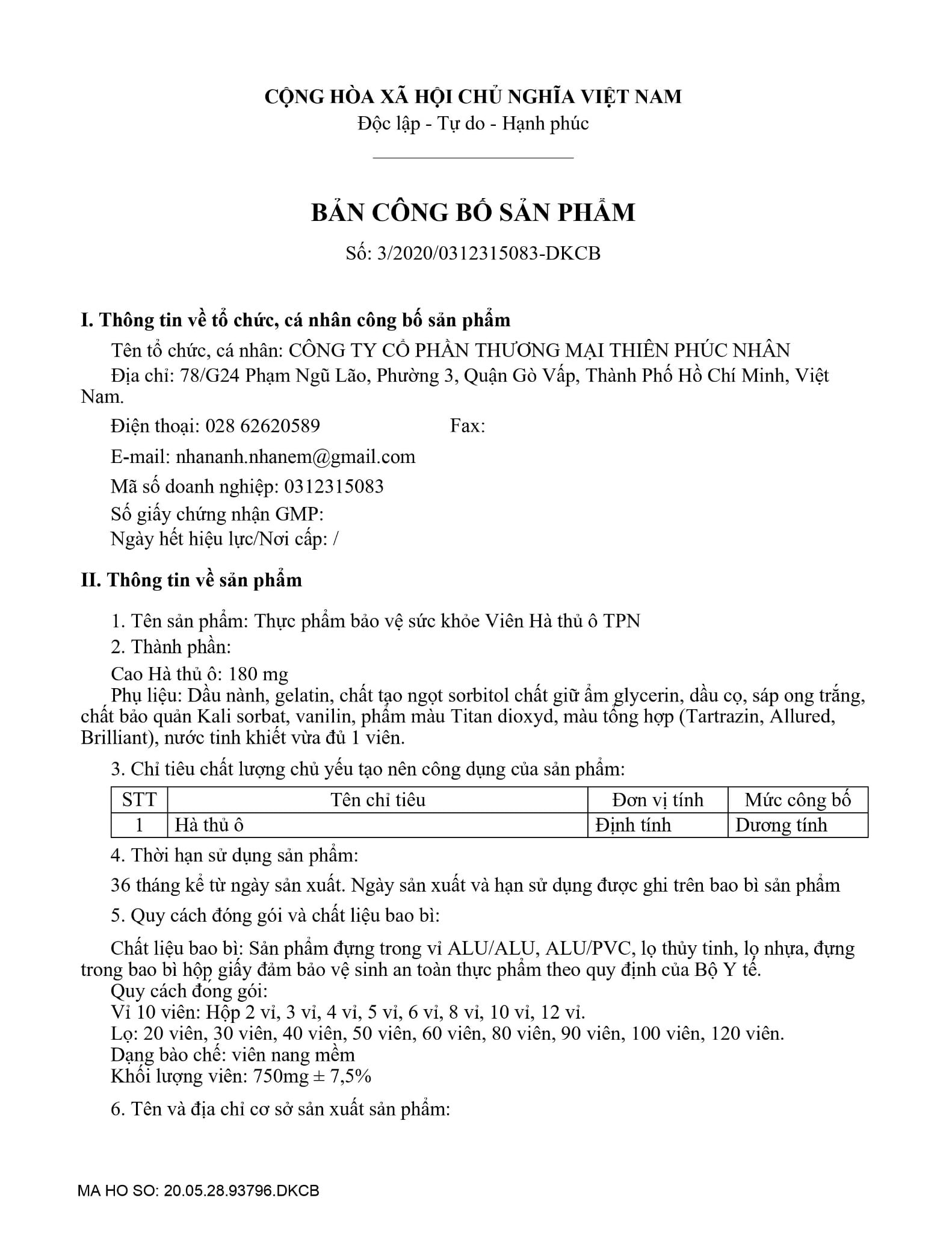 CÔNG TY CỔ PHẦN THƯƠNG MẠI THIÊN PHÚC NHÂN